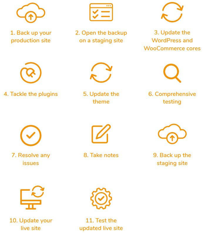 Our team of WooCommerce specialists has taken 10 years to perfect a foolproof system for updating a WooCommerce site.