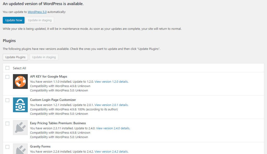 Now you’re safely on a staging site and you’ve tested WordPress and WooCommerce, you might be tempted to hit the update button — just to see what happens.