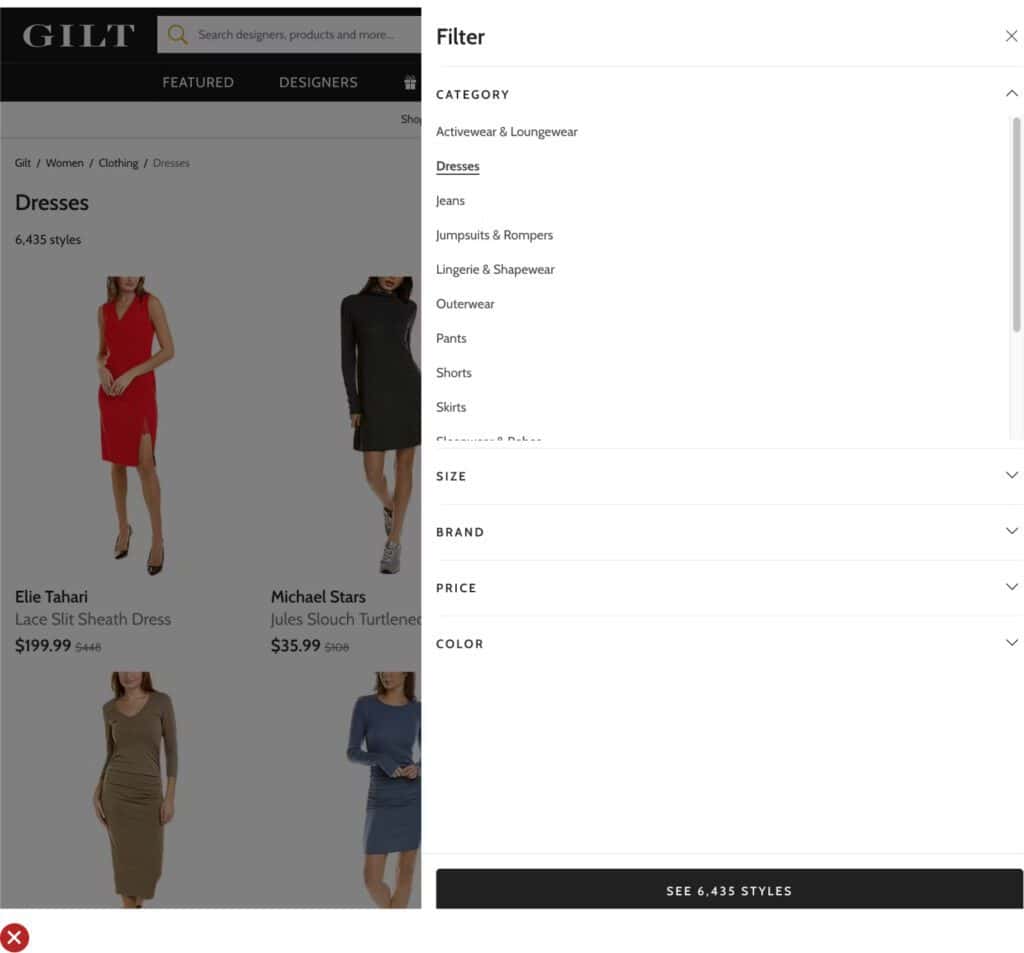 Issue: Shoppers may experience frustration if they can’t choose multiple filter options within a single category, which could impede their product search and increase their chances of abandoning the cart.