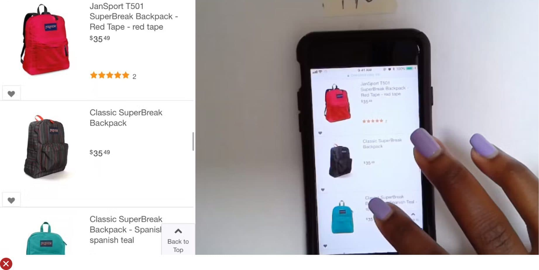 Example: Including the five essential attributes – price, product title or type, thumbnail, ratings, and product variations – in every list item will greatly improve user understanding of the product.