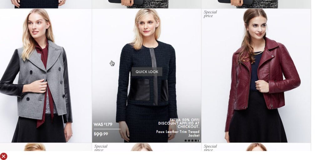 Issue: Users may mistake “Quick Views” for the product page, resulting in missed product information and features.