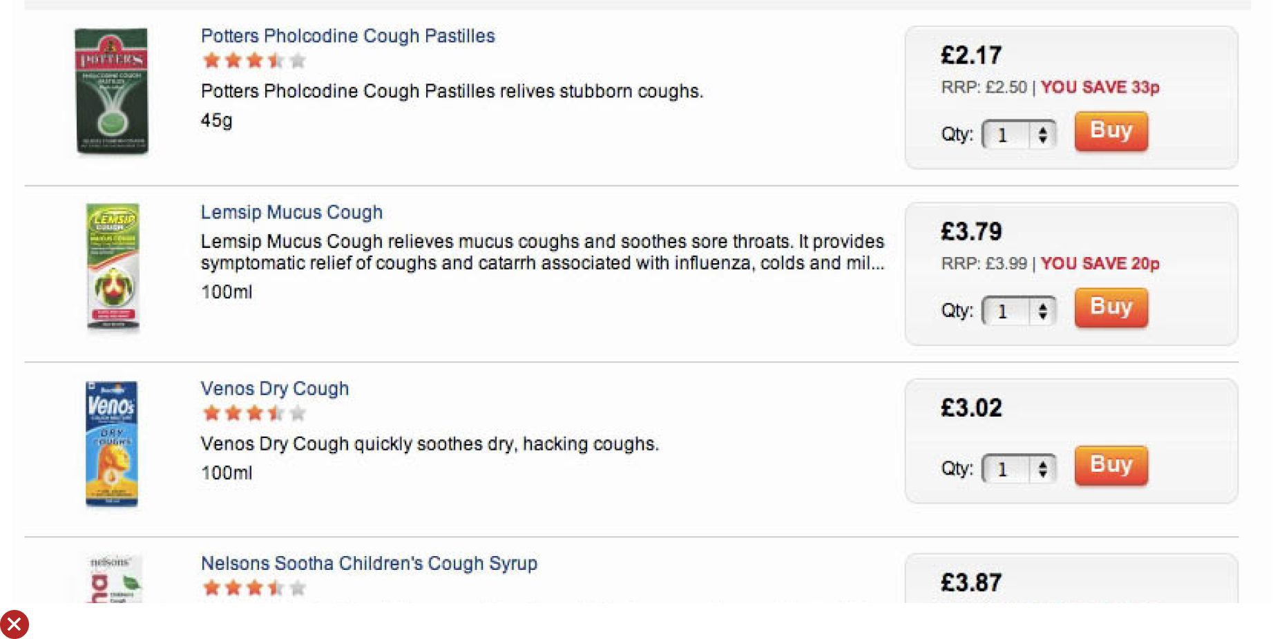 Advice: Make sure you provide thumbnails for all list items, even if the products aren’t highly visual (like information products).