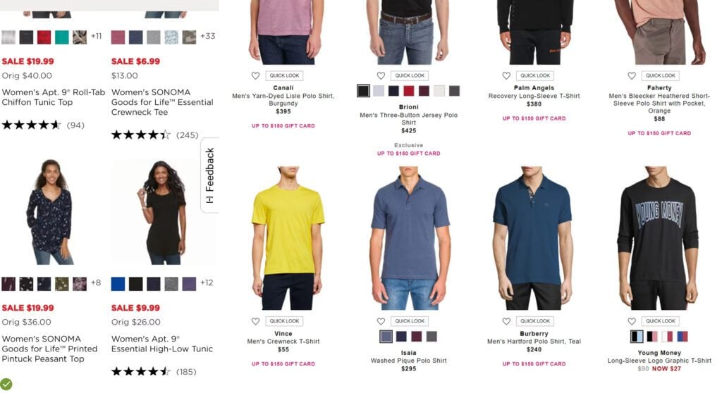 Example:: In its product listings, Kohl’s merges colour variations into individual entries, supplemented with prominent colour swatches and clear indicators of the number of truncated colours. This simple strategy offers users a comprehensive view of the product range, ensuring they won’t miss any important variations.