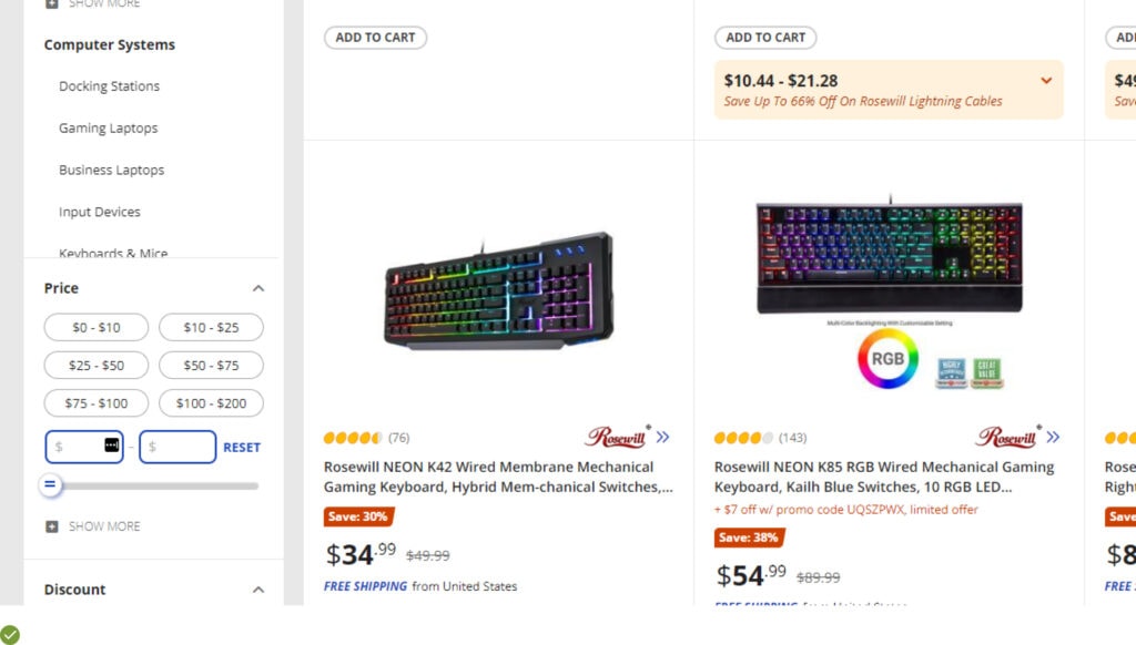Example: Take inspiration from Newegg’s user-defined price range feature, allowing users to circumvent the predefined ranges and curate a more tailored product list, improving the customer journey and boosting sales potential.