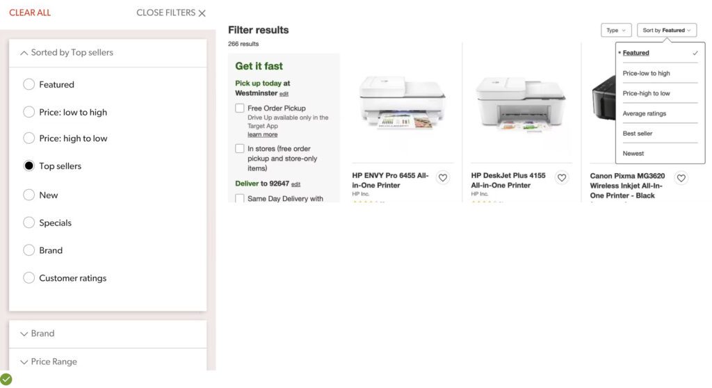 Advice: Implementing “Product Status” filters such as “Out of Stock,” “New,” “1-day Shipping,” and more, can greatly enhance user experience.