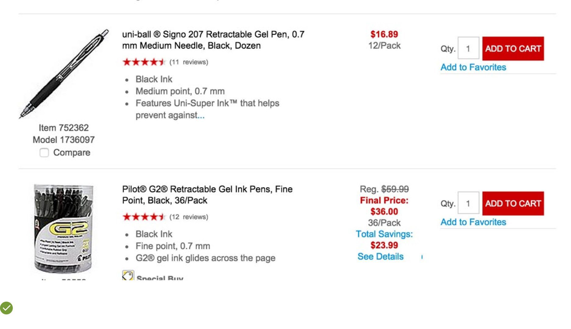 Advice: Ensure the same product list consistently includes and presents the same information. This aids in easy product comparison.