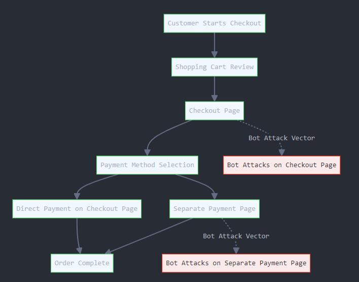 When the credit card entry is handled on a separate page, attackers can bypass the initial stages of the checkout process and focus solely on that isolated payment page. By programmatically sending requests to the payment URL, they can target the payment gateway repeatedly, which often results in failed transactions. This can quickly snowball into hundreds of failed orders, as reported by the user.