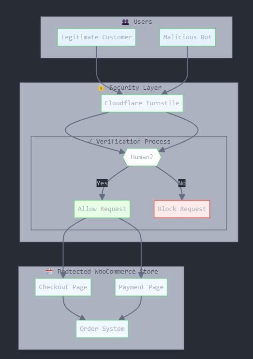 The WooCommerce checkout page can be an attractive target for bots designed to test stolen credit card information or simply overwhelm the site with unnecessary transactions. Without any protective measures in place, bots can initiate numerous checkout processes, leading to failed orders, decreased performance, and even downtime.