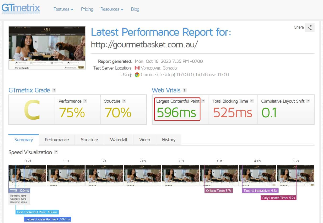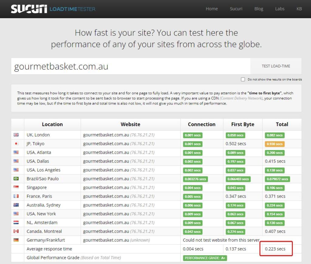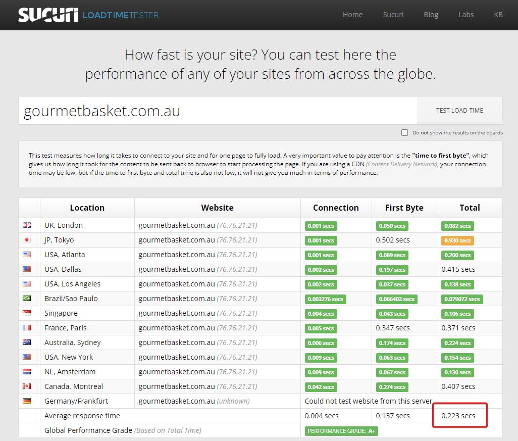 Using independent testing tools, here’s how Gourmet Basket now performs: