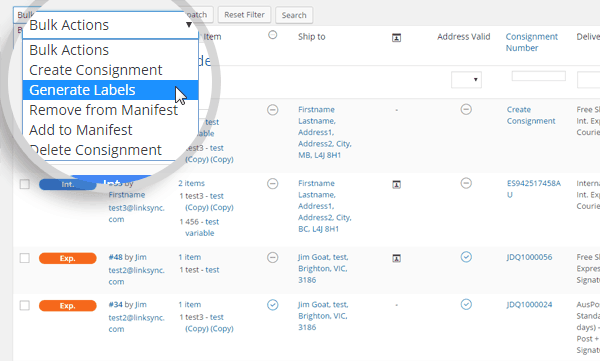 - You can create consignments and labels for all of your orders in bulk with just a few mouse clicks, reducing the amount of time you need to spend on each order to just seconds.
